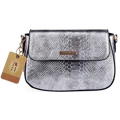This sloped snakeskin pattern fashion messenger bag is manufactured with high quality PU leather, fully-lined fabric interior, and gorgeous metal accessories.