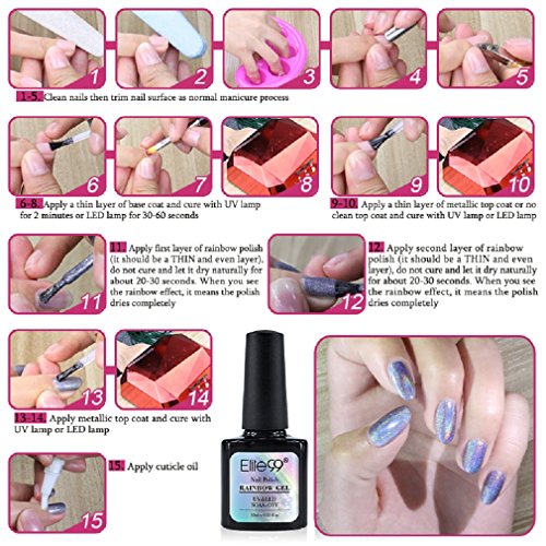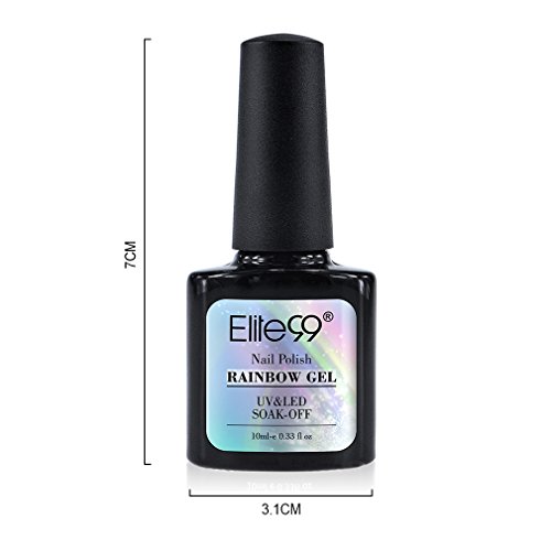-. Binding : Misc. -. Brand : Qimisi -. Feature : Colorful Rainbow Gel Polish can easily see the colorful rainbow effect from different viewing angles / Volume: 10ml / e 0.33 fl oz / Certification: MSDS, SGS / Suitable Lamp: UV/ LED/ CCFL Lamp / Important notice: Rainbow gel polish has smell like normal nail lacquer. If you care, please don't place bid. -. IsAdultProduct : 0 -. Label : QIMISI -. Manufacturer : QIMISI -. PackageQuantity : 1 -. ProductGroup : Beauty -. ProductTypeName : BEAUTY -. Publisher : QIMISI -. Studio : QIMISI -. Title : Elite99 Colorful Rainbow Gel Polish Soak Off UV LED Nail Art Holographic Manicure 10ML