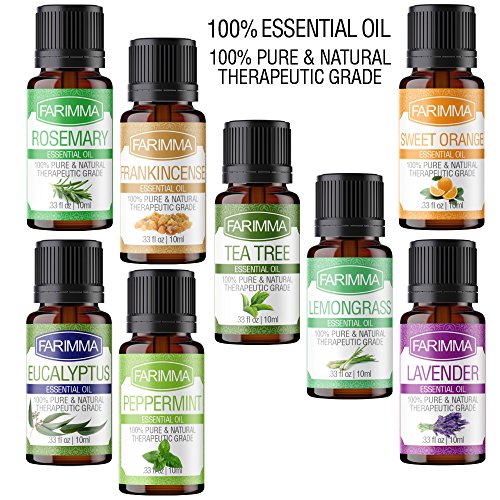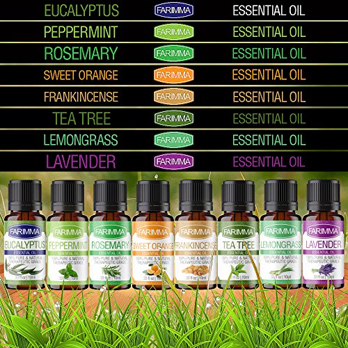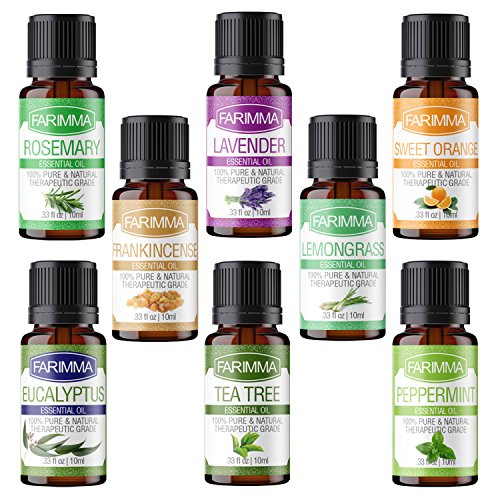 Farimma Aromatherapy Top 8 Essential Oils Gift Set, 100% Pure & Therapeutic Grade Plant Oils - 10 ml Each (Lavender, Eucalyptus, Rosemary, Lemongrass,...
