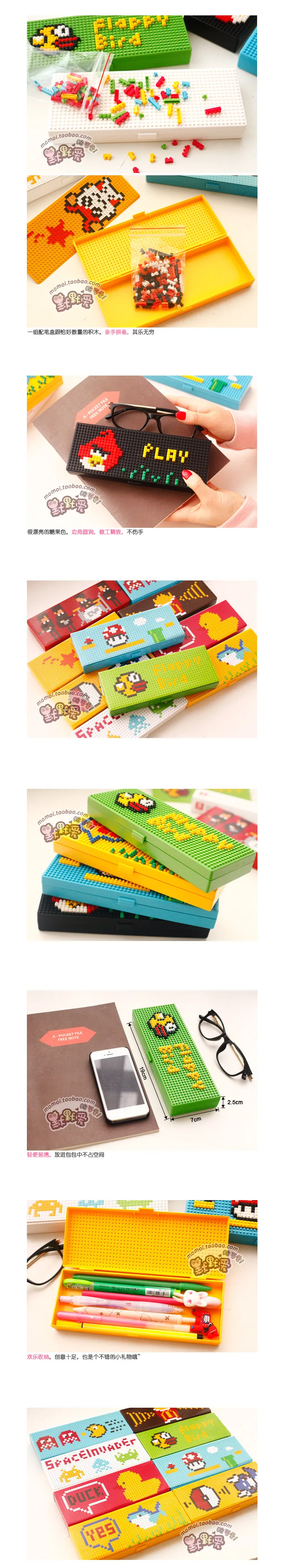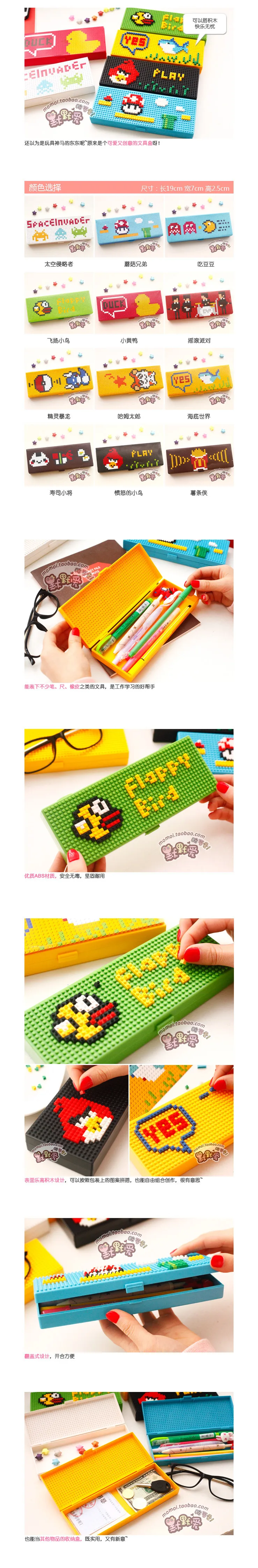 日本のかわいい鉛筆ケースクリエイティブdiyレンガ子供スクール鉛筆ボックスabsプラスチック鉛筆ケース用ペン/鉛筆