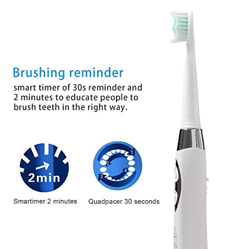 POWERFUL CLEANING AS JUST GET OFF DENTIST'S CHAIR with 35,000 micro-brush per minute. Remove up to 100% more plaques and stains, compared with a regular manual toothbrush. Enjoy clean and healthy teeth in 7 days and improve gum and oral health in 14 days. 5 YEARS LIFE DESIGN WITH 1 YEAR WARRANTY AND 180 DAYS NO HASSLE RETURN.