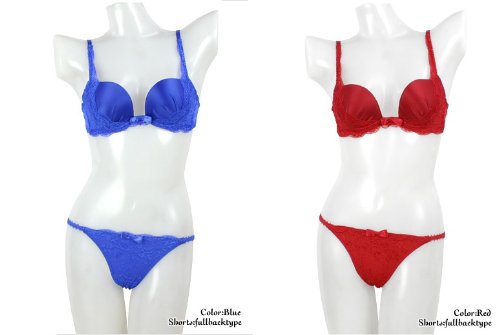 -. Title : グラマラス美乳ブラ&レーシーショーツセット ブルー レッド 2色組B70(M)