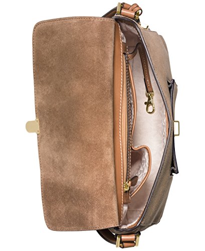 -. Feature : Suede / Lock Fastening / Interior: Zip Pocket, 2 Utility Pockets, 1 Slip Pocket, Key Clip / Adjustable Strap: 21.25"-23.5" / 11.5"W X 10"H X 3.5"D