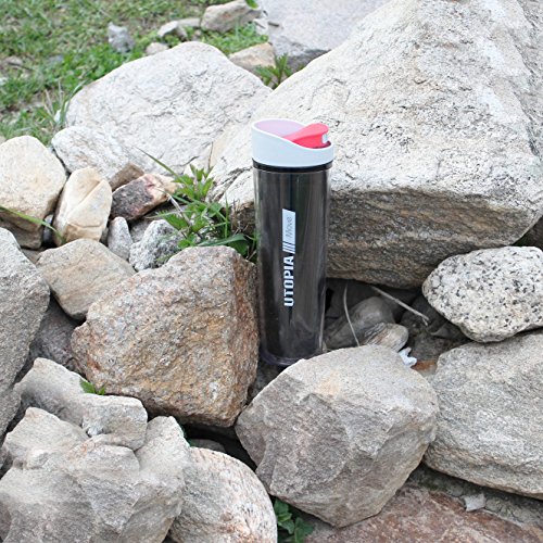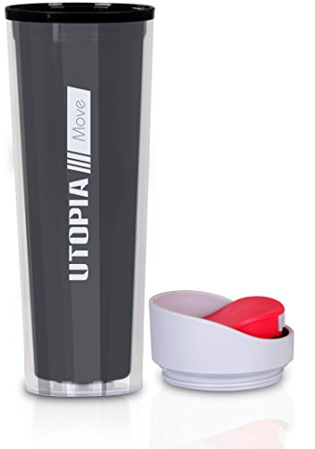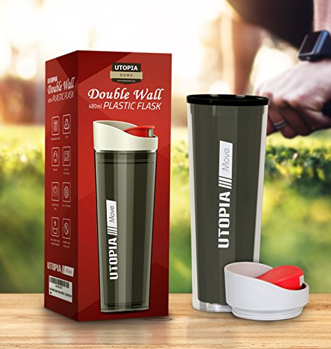 Double Wall Plastic Flask / Water Bottle - Leak Proof Container - BPA-Free and Dishwasher Safe - 16 Ounce Ample Capacity - by Utopia Home