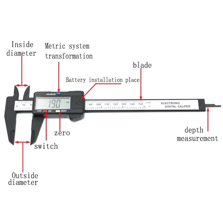 QSTEXPRESS New Arrival 150mm 6 inch LCD Digital Electronic Carbon Fiber Vernier Caliper Gauge Micrometer Measuring Tool