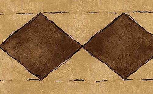 -. Title : Wallpaper Border Rusty Red Diamonds on Cream Faux with Gold Accents