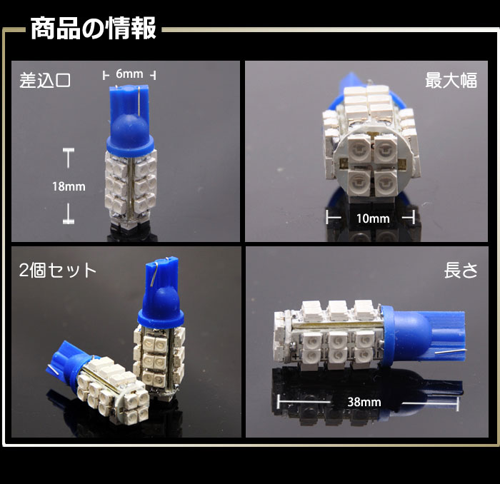 ●1.最新のSMD素子をなんと28個も使用したT10型LEDウエッジバルブ 2個セット(前面に4個、側面に24個のSMD