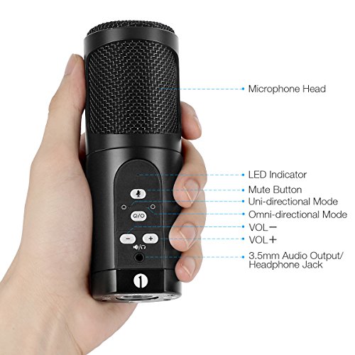 -. Title : 1byone USB Microphone with tripod, Mute Button, LED indicator, audio out volume up/down control, compatible with Windows/MacOS/Linux, Cardioid or Omni-directional Condenser USB Microphone
