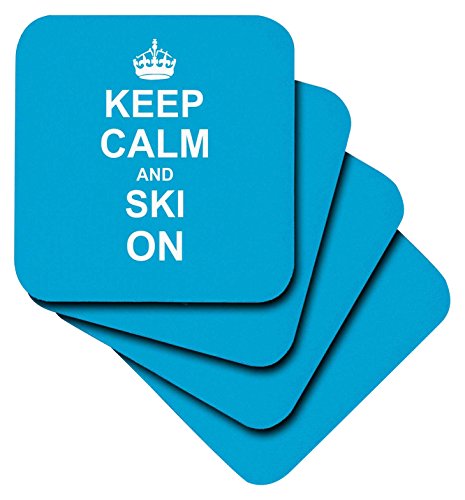 3dRose Keep Calm and Ski on - Blue Carry on Skiing - Hobby or Professional Skiier Gifts - Fun Funny Humor - Soft Coasters, Set of 8 (cst_157773_2)