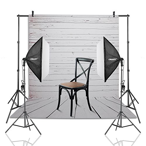 Emart Photo Video Studio 10Ft Adjustable Backdrop Stand Support System Kit, 5x10ft White Wood Floor Polyester Background Screen for Photography