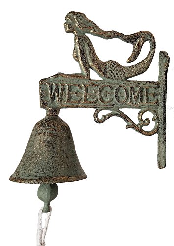 Beach Decor Mermaid Cast Iron Door Bell / Dinner Bell / Welcome Sign, Outdoor or Indoor, 7" (Faux Aged Copper)