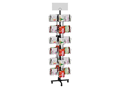 -. Title : Fixture Displays 6-Tiered Greeting Card Rack for Floor, 72 Pockets, with Sign Clip, Rotating - Black 19345 19345