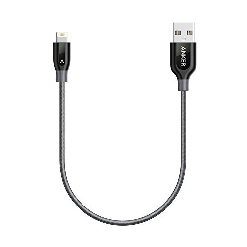 Anker PowerLine+ Lightning Cable (1ft) Durable and Fast Charging Cable [Double Braided Nylon] for iPhone, iPad and More (Gray)
