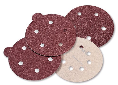 Mercer Abrasives 5790320-100 Aluminum Oxide Red Discs, 5-Inch by No Dust Holes Single Discs with Tabs, 320E Grit, 100-Pack