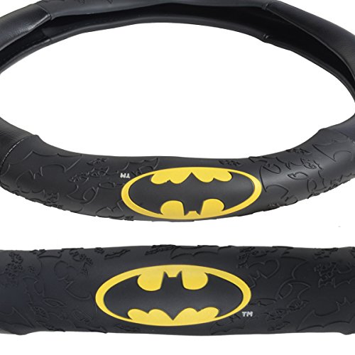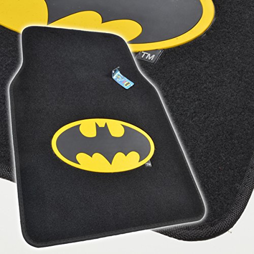-. Feature : Brand New - oficially licensed Batman Carpet Floor Mats, Steering Wheel Cover / Carpet Mats features anti-fading coloring & a non-skid Backing / Front Mats measure 17x27, Rear Mats measure 17x13 / Smooth steering rubber grip with 2 raised Batman logos & fits all wheels sized between 14.5 inches to 15.5 inches