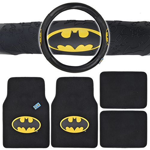 -. Title : Batman Auto Accessories Interior Kit - Front & Rear Carpet Floor Mats, Steering Wheel Cover