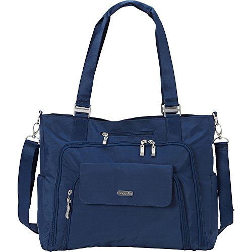 -. Brand : Baggallini -. Department : womens -. Feature : Top zip closure / Double handles with a drop length of 11 inches / Removable, adjustable crossbody strap with a drop length of 28 inches / Lined interior features removable wristlet and zipper pocket / Front exterior features three pockets -. Label : baggallini -. Manufacturer : baggallini -. PackageQuantity : 1 -. ProductGroup : Apparel -. ProductTypeName : LAGE -. Publisher : baggallini -. Studio : baggallini -. Title : baggallini RFID Integrity Tote - Exclusive