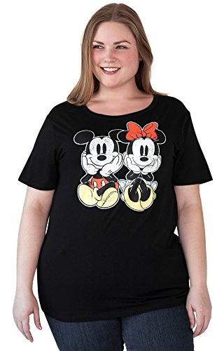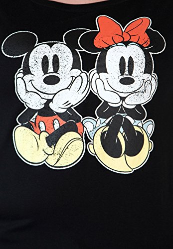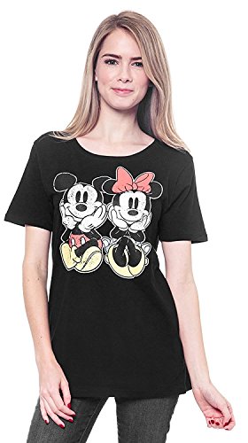Junior t-shirt with Mickey and Minnie Mouse graphic - officially licensed. Junior cut - runs small. Graphic is distressed for vintage/retro/aged look. Crewneck, short sleeves, no print on back. Lightweight fabric - 60% cotton 40% polyester.