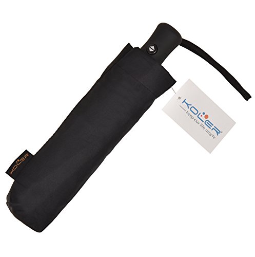 -. Feature : WINDPROOF VENTED DOUBLE CANOPY - allows fierce wind to vent between layers, preventing umbrella from flipping over. / FAST AUTO OPEN AND CLOSE - with just one slightly press of the button. One second one hand operation. You don't need to wait another second to open/close the umbrella when you get out or into your car in the sun or rain. / LARGE, LIGHTWEIGHT & PORTABLE - The canopy arc 46 inch is a large, oversized rain or sun folding umbrella designed for two persons. compact 11.8 inch long when folded, it can easily fit in your bag or car drawer. / HEAVY DUTY - Premium Fiberglass and durable Steel Frame prevent breakage or rib distortion in fierce winds. High quality canopy is made with Pongee which offer maximum protection from precipitation, and dry very quickly. / ON SALES & 100% SATISFACTION GUARANTEE . You can find PROMO CODE below column! Your satisfaction is our main P.R.Iority - Koler® are proud to offer no questions asked money back guarantee. Koler will gladly send a full refund or replacement if there is a problem, NO questions asked!