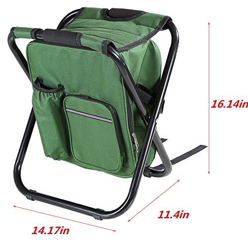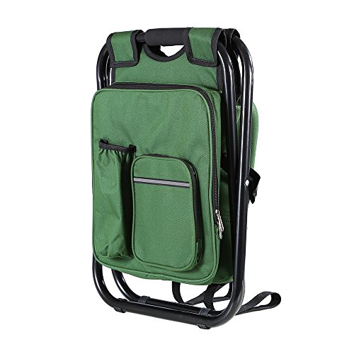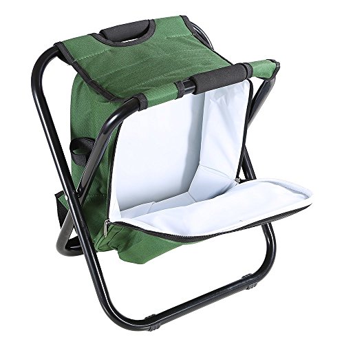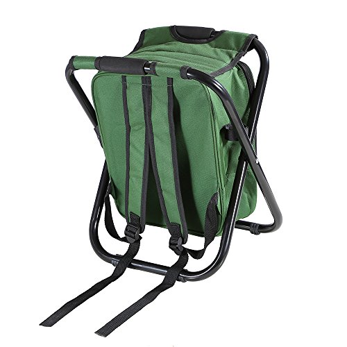 Studio : ZedYasou Publisher : ZedYasou Product Description Very nice folding chair. Allows you to carry the chair on your back while also carrying items inside the chair. Specifications: Material: 600Dpvc Oxford cloth/steel tube Color: Green;Blue Size:36*41*30cm Weight:1500g Weight Supported: 300 lb Features: Compact Light Insulated cooler for food It certainly is handy and perfect for a quick stop and rest if need be. On the side of the chair you can still access the pockets and retrieve your drinks or snacks from the pockets. When you're done, zip up the pockets and fold up the chair and place on your back. This is a great chair to use for fishing, camping, hunting, or simply at various outings. About our services: Any problems,kindly feel free to contract us. If you are satisfied with it,please don't forget to leave 5 stars Positive Feedback ,we will appreciate your encourage. If you are not satisfied with it,before you leave the negative/neutral feedback,contract us and let us know the reason,we will do our best to rectify the matter. 0