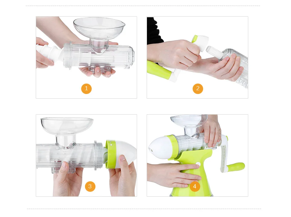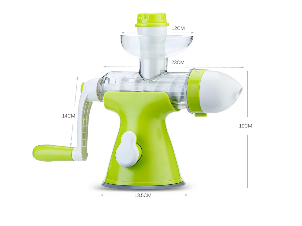 - Manual hand crank juicer has new improved design, each part has been designed for safety