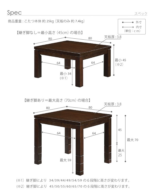 天板サイズ:幅80x奥行80cm・厚み38mm