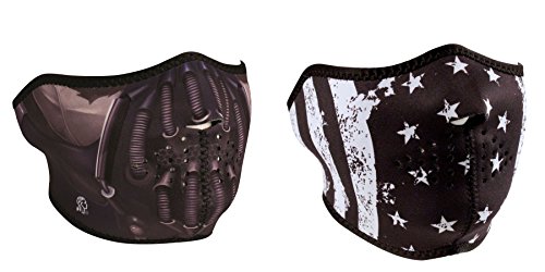 -. Feature : This Product is a 'Bundle' of 2 Neoprene Face Masks identified as a 'Pain' and a 'Black & White Vintage U.S. Flag Face Mask' / The First Facemask is the ZanHeadgear 'Pain' Half Face Neoprene Face Mask / The Second Facemask is the ZanHeadgear 'Black & White Vintage U.S. Flag Face Mask' Half Face Neoprene Face Mask / These Face Masks / Ski Mask are made of Durable, Naturally Warm & Water Resistant Neoprene Face Mask Material / The Mask Sizes are adjustable, by up to 2 inches, using the Hook & Loop closure, located at the back of the head