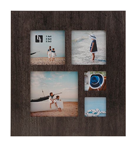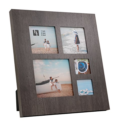 -. Binding : Kitchen -. Brand : BorderTrends -. Color : Dark Grey -. EAN : 0626263133202 -. Feature : Modern 5-opening collage frame for wall or tabletop / Constructed of wood composite with a woodgrain wrap finish and glass insert / Easel back with multiple hangers for horizontal or vertical display / Holds 5 photos with opening sizes of 4.3x4.1, 2 3.1x3.1 and 2 2x1.8 inches / Great for square photos from your smartphone! -. IsAutographed : 0 -. MPN : B0141KLGC0 -. PartNumber : B0141KLGC0 -. ProductGroup : Home -. ProductTypeName : HOME -. Size : 10.5x11.5 -. Title : BorderTrends Taylor Multi Opening Wood Collage Photo Frame, Dark Grey -. UPC : 626263133202
