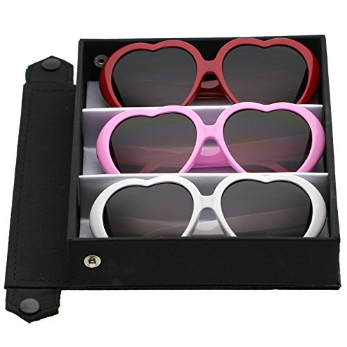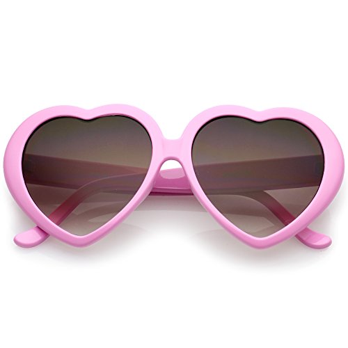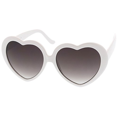 Sweet and cute, these heart-shaped sunglasses feature are designed in a variety of fun colors and an oversized silhouette. Accented with stylishly wide temples and neutral-colored gradient lenses, these darling sunglasses add a flirty touch to any look. Perfect for parties, music festivals, or Springtime, we are falling in love with these heart sunglasses. Made with a plastic based frame, metal hinges, and polycarbonate UV400 lenses. Lens Height: 50 mm | Lens Width: 55 mm | Bridge: 16 mm | Frame Total: 142 mmFeature