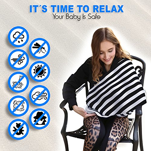 -. Feature : MULTI-PURPOSE DESIGN: As well as a nursing P.R.Ivacy cover, you can use this great baby accessory as a car seat cover, baby grocery cart cover, canopy for your baby's stroller, use it as fancy scarf and much more due to its stretchable component. The cover also has an elegant and stylish black and white striped design allowing you to wear it with almost any item of clothing as well as looking as fashionable. / QUALITY MATERIALS: Baby breastfeeding cover made for both mothers and baby in mind. Made from 95% rayon cotton 5% spandex combination makes them lightweight, extra soft, breathable and safe to machine wash. / PROTECTION FOR BABY AND YOU: Our breastfeeding covers are made for all seasons. Providing protection against the elements. It's the perfect piece of baby cover to protect your baby from the sun, elements or unwanted prying eyes. / BONUS BABY BIB - Super absorbent, high quality, comfortable baby bib made out of 100% cotton to help protect your baby's clothes from any drool or food spit ups. A white baby bib that will go with any outfit for your baby and a unisex bib. Free gift worth at absolutely no additional cost! / PERFECT BABY SHOWER GIFT: Confused what to give at a baby shower? Look no further. Perfect and thoughtful gift. This multi-purpose nursing P.R.Ivacy cover comes in a little bag along together with a high quality baby bib. Two gifts for the P.R.Ice of one. Hurry whilst stocks last. Scroll up and click the add to the basket button. You will not be disappointed.