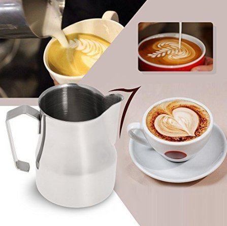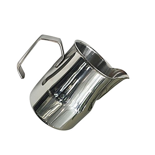 Features: ?Made of stainless steel, and classic design, allows you to easily make various patterns, easy to use, and can be washed by dishwashers. ?Multi-purpose: for latte and cappuccino making, measuring liquid volume, stirring milk and cream, making milk foam. Suitable for water, fruit juice, batter, smoothies and other dumpable items. Specifications: Material: stainless steel Weight: 372g Size: 3.66 x 4.92in Specifications:750ml/24oz