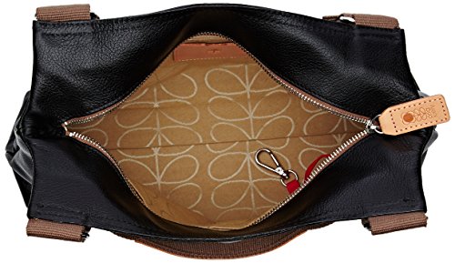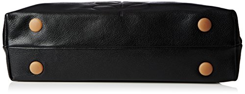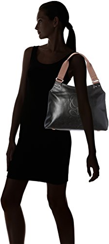 Embossed stem logo leather shoulder bag with leather trims and double sided webbing handles and contrast colored zip closure. Inside details include linear stem jacquard lining, small leather logo card holder pocket, zip pocket, elasticated key chain and mobile slip pocket. Silver colored hardware. Handles measure 44 cm from top edge of the bag.
