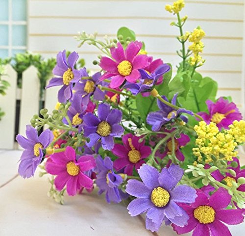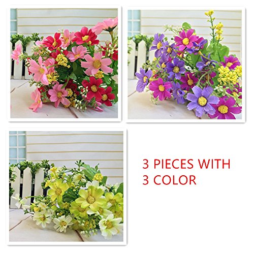 RayLineDo 3 Bunches of Cineraria Artificial Flower Bouquet Home Office Decor (Light yellow and White/ Light Purple/Rose Pink)