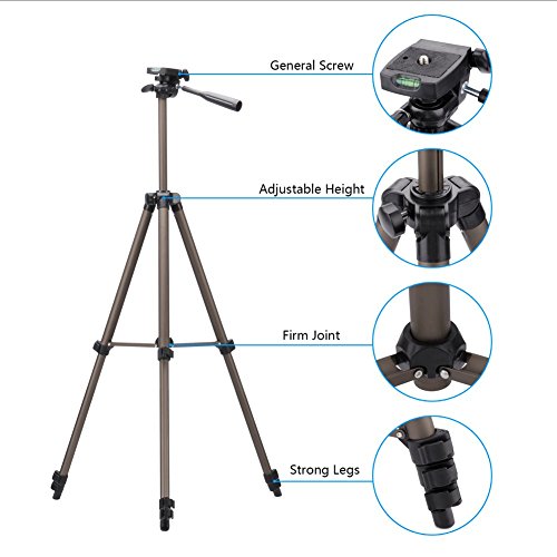 Eocean 50-Inch Tripod, Lightweight Aluminum iPhone Tripod, Video Tripod for Cellphone and Camera, Universal Tripod + Bluetooth Remote Control Shutter + Cellphone Holder Mount for iPhone, Samsung, etc.