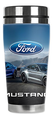 Mugzie Ford Mustangs Travel Mug with Insulated Wetsuit Cover, 20 oz, Blue
