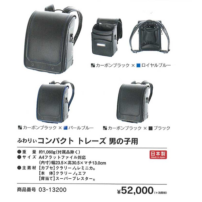 원본상품명: 頑張ってるお母さんにもプレゼントつき!送料?み(沖?離島は送料800円)2018年モデルふわりぃ ランドセル Treize ふわりぃコンパクト トレ?ズへりなし ランドセル(日本製)クラシック 男の子用 03-13