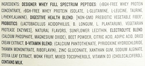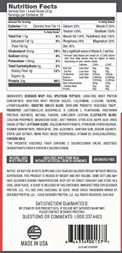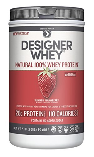 ReleaseDate : 2008-07-08 Studio : Designer Whey Publisher : Designer Whey Binding : Grocery Product Description Designer Whey led the innovation of the first commercially available whey protein powder in 1993.? Two decades later, it more than meets the gold standard among those who recognize the superior protein benefits of 100% whey.? Trusted by Olympic champions, Designer Whey is Kerri Walsh Jennings’ favorite protein powder.? 20g of premium natural whey protein with added amino acids including L-glutamine, L-Leucine, Taurine, L-phenylaline, plus, vitamins, minerals, probiotics, and electrolytes for post workout recovery.? Designer Whey contains vegetable-based digestive enzymes to support protein absorption and 100% Daily Value of important B-vitamins to convert protein to usable energy to help boost metabolism.? Enjoy the benefits of Designer Whey in a range of flavors including French Vanilla, Gourmet Chocolate, Summer Strawberry, Vanilla Almond, Double Chocolate, Vanilla Praline and Purely Unflavored. 0