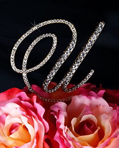 Unik Occasions Victorian Crystal Rhinestone Wedding Cake Topper, Small, Letter U, Gold