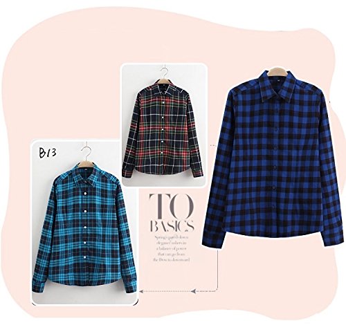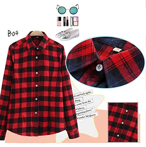 -. Title : (ザデイアンドスノウ) TheDay&Snow チェック ネル シャツ 綿 コットン 大きい サイズ 長袖 ブラウス レディース (2XL, 赤 × 黒(B06))