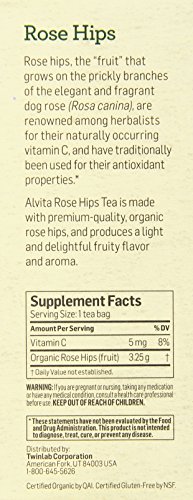 -. Binding : Health and Beauty -. Brand : Alvita -. Color : Red -. EAN : 0027434039901 -. Feature : Alvita rose hips tea is made with premium-quality, organic rose hips, and produces a light and delightful fruity flavor and aroma / Naturally caffeine free / Certified organic by qi -. IsAdultProduct : 0 -. Label : Alvita -. LegalDisclaimer : Actual product packaging and materials may contain more and different information than what is shown on our website. We recommend that you do not rely solely on the information presented and that you always read labels, warnings, and directions before using or consuming a product. Please see our full disclaimer below. -. Manufacturer : Alvita -. Model : S1544352N -. MPN : 027434039901 -. NumberOfItems : 1 -. PackageQuantity : 1 -. PartNumber : 027434039901 -. ProductGroup : Health and Beauty -. ProductTypeName : HEALTH_PERSONAL_CARE -. PublicationDate : 2014-11-29 -. Publisher : Alvita -. ReleaseDate : 2014-11-26 -. Size : 24 -. Studio : Alvita -. Title : Alvita Organic Rose Hips Herbal Tea Bags, 24 Count -. UPC : 027434039901