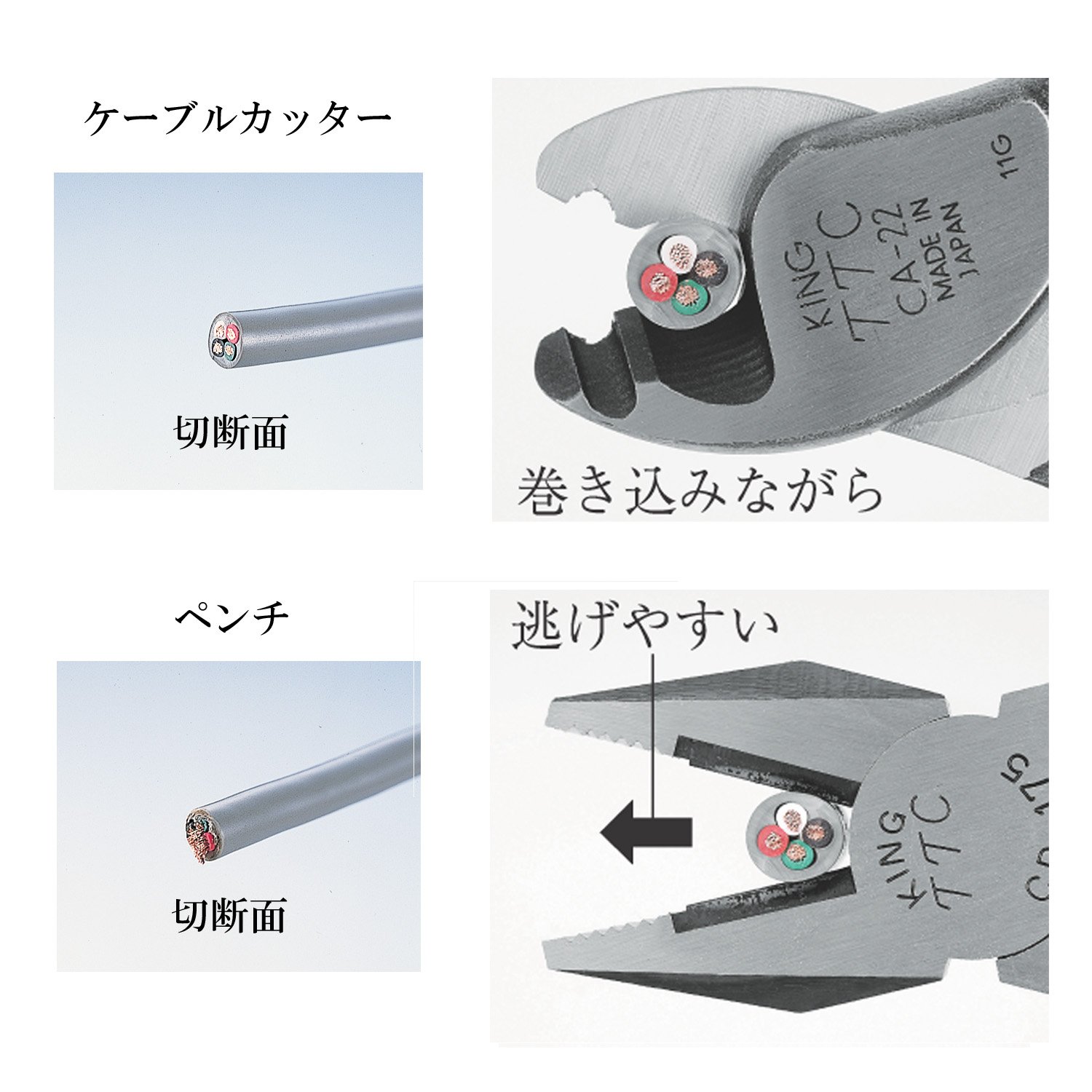 ● It does not crush the cable and cuts cleanly with a light force