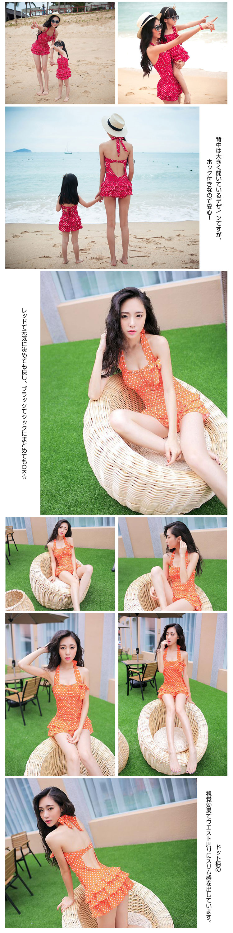 | 着やせ効果バツグンの親子おそろいワンピース。肩ひもは太めの作りでしっかりとバストを包みます。胸元の小さなリボンがさりげなくかわいい。かわいさとセクシーさを兼ね備えた一枚です。背中は大きく開いているデザインですが、ホック付きなので安心!レッドで元気に決めても良し、ブラックでシックにまとめてもOK☆ | |