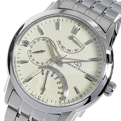 -. Feature : (約)H38×W38×D14.5mm、バンド幅:20mm、腕周り最大(約)19cm、最小(約)14cm / 自動巻き、パワーリザーブインジケーター(40時間)、10気圧防水、レトログラード曜表示、日付カレンダー、バックスケルトン、ルミナスライト、プッシュ三つ折式、国内品番:WZ0041DE、カラー:クリーム(文字盤)、シルバー(ベルト) / 国際保証書、日本語&英語の正規説明書、オリエントスター正規BOX