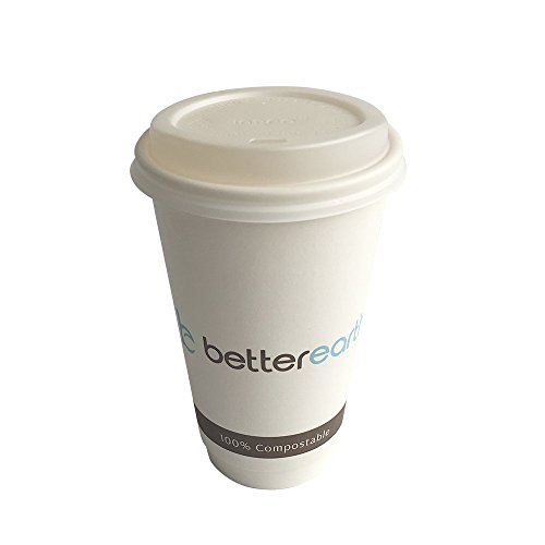 Better Earth BE-DWHC16PLA 16oz Double Wall Compostable Hot Cup, Lid not included - see part number BE-L1024PLA, 8" Height x 4" Width x 3" Depth, White, 25 Packs of 20 (Pack of 500)