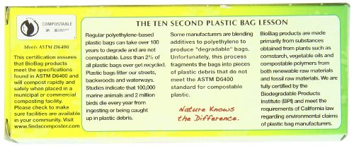 - Feature : Certified Compostable for community and home composting / Perfect for collecting food waste, paper and other large compostable waste / Made from plants, vegetable oils and Mater-Bi / Should be used within one year of purchase and stored in a cool, dry place / Pack of 4, 12-count boxes (total of 48-counts)