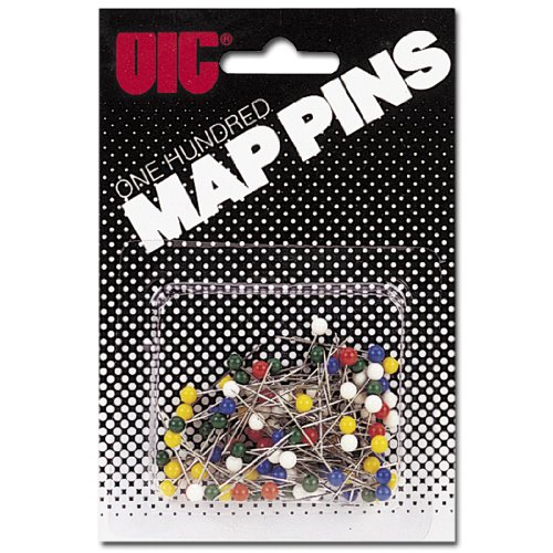 Officemate OIC Map Pins, Assorted Colors, 100 per Pack (30060)