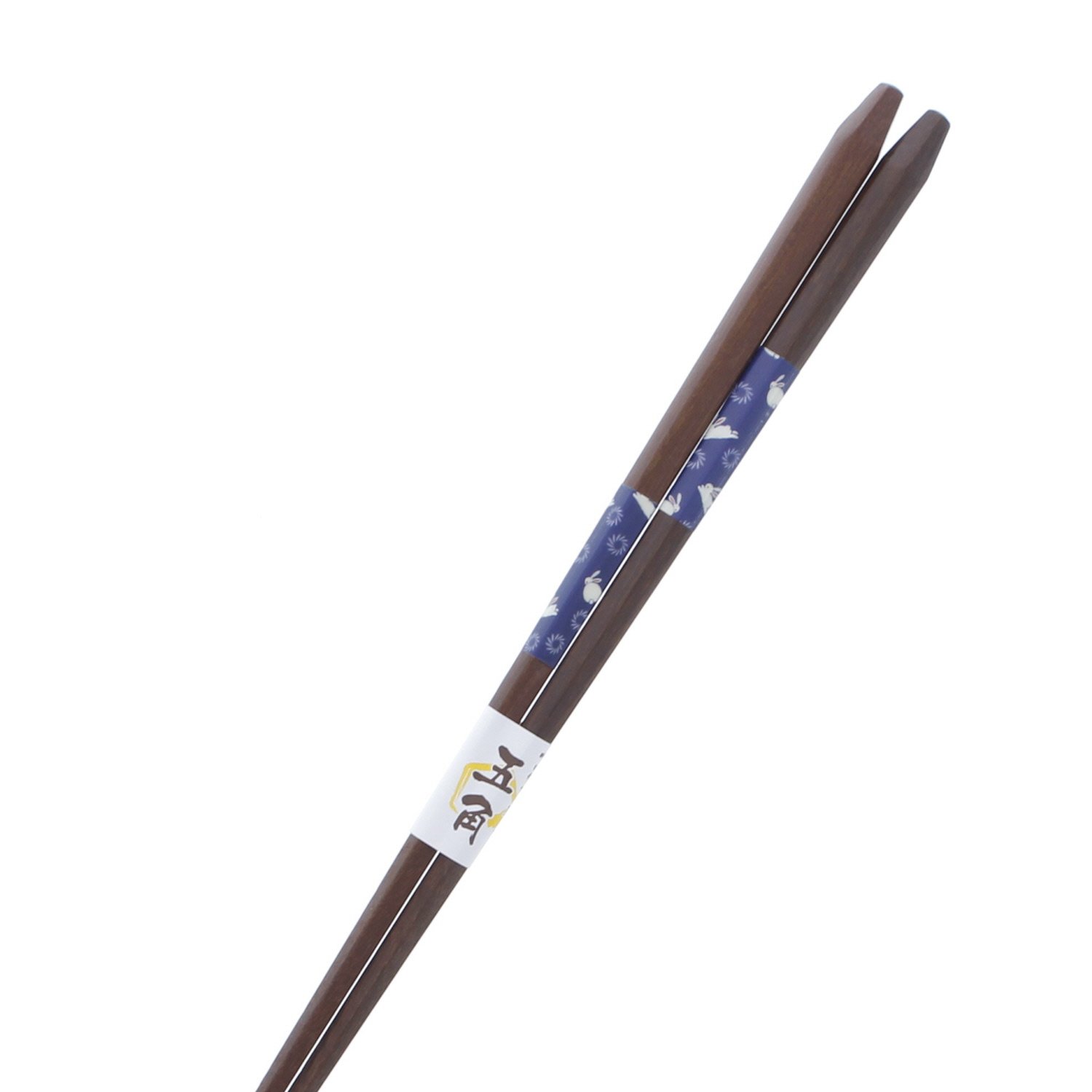 Chopsticks pentagonal seafood rabbit wooden (natural wood) Blue 33cm