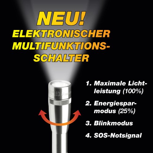 -. Feature : Multi-mode electronic switch offers four modes: High Power (100%), Low Power (25%), Blink mode, and SOS mode making it great for emergencies at home or in the car / Advanced lighting instrument driven by the next generation of Mag-LED technology that delivers performance oriented features in a sleek, compact design / Superior quality craftsmanship with weather-resistant seal, diamond knurl design, and anodized inside and out for improved corrosion resistance / Adjustable and powerful lighting instrument that makes a useful gift and fits perfectly into pockets, purses, attaché cases, etc. / Made in America and built tough enough to last a lifetime making it suitable for camping, car repairs, climbing, dog walking, fishing, household use, hunting, etc.