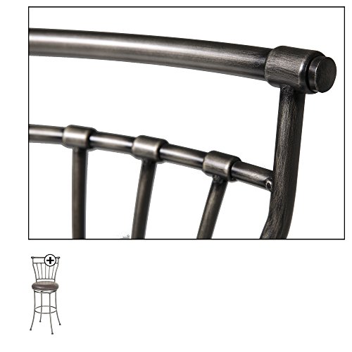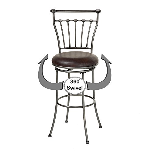 -. Feature : Circular swivel-seat has a rotating range of 36°; 26" seat height designed for 36" to 39" counters / Steel construction paired with Striated Silver finished frame and Coffee faux leather upholstery / Long, clean lines are the defining feature of this piece / Measures 18" (L) x 19" (W) x 41" (H) with a 17" diameter seat and 9" footrest height / Comes with a 1-year limited warranty against manufacturing defects; Includes all hardware needed for easy assembly / Design and exquisite finishes creates a seating option that will fit into any style room / Metal finish and a soft faux leather seat finish off this transitional piece / Provides seating for kids doing homework at the counter, keeping the cook company, or gathering of friends / Warning: May cause loved ones to pause a minute, rest their heels and enjoy each other's company