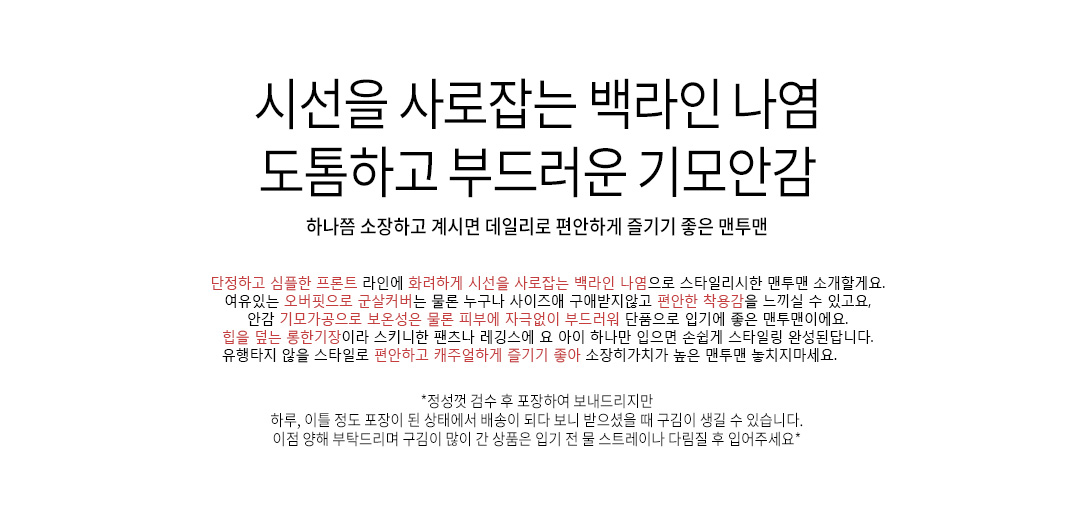 .같은 사이즈라도 체형에 따라 핏감이 조금씩 다를 수 있습니다.